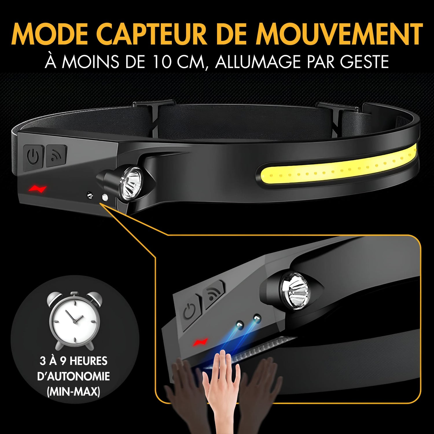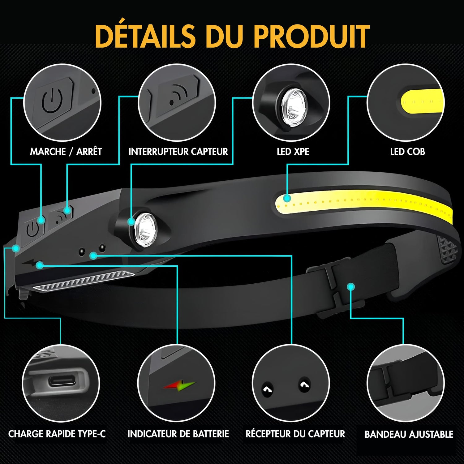 Lumyostore™ – Lampe Frontale LED 230° Réglable & Rechargeable